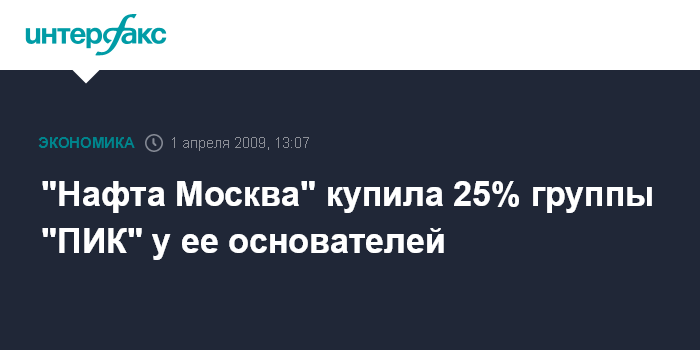 Москва. 1 апреля. INTERFAX.RU - "Нафта Москва" Сулеймана Керимова стала владельцем 25% акций девелоперской группы "ПИК".