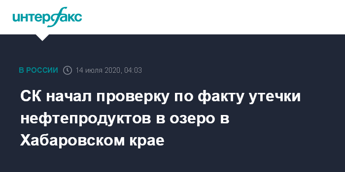 Москва. 14 июля. INTERFAX.RU - Нефтепродукты из трубопровода "Оха - Комсомольск-на-Амуре", на котором произошла утечка, попали в озеро Голое, сообщает Следственное управление СК РФ по Хабаровскому краю и ЕАО во вторник.