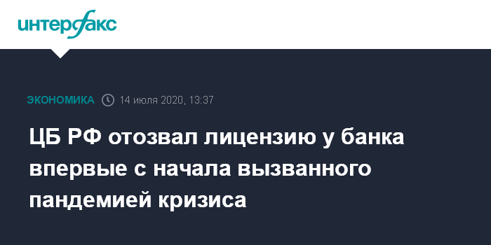 Это первый отзыв лицензии с начала кризиса, вызванного коронавирусом и падением цен на нефть. В последний раз регулятор лишил лицензии банк в конце января (тогда с рынка ушел московский Апабанк).