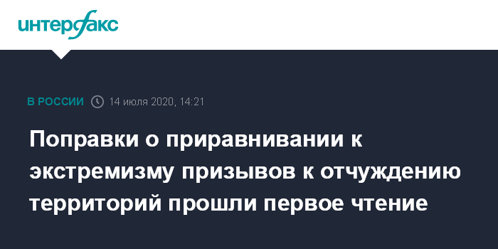 Поправки о приравнивании к экстремизму призывов к отчуждению территорий прошли первое чтение