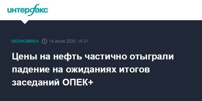 Москва. 14 июля. INTERFAX.RU - Снижение цен на нефть эталонных марок сократилось в ходе торгов во вторник; инвесторы ожидают итогов заседаний технического и министерского мониторингового комитетов ОПЕК+.