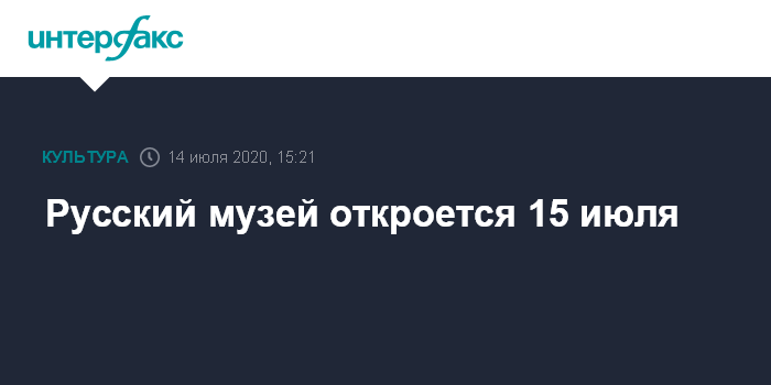 Русский музей откроется 15 июля