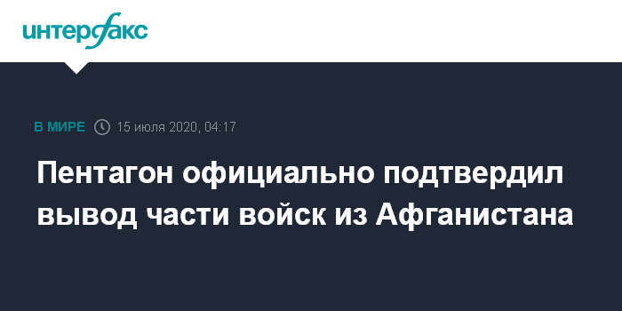 Пентагон официально подтвердил вывод части войск из Афганистана