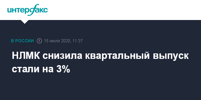 Москва. 15 июля. INTERFAX.RU - Во II квартале 2020 года группа НЛМК (флагманский актив - ПАО "Новолипецкий металлургический комбинат") произвела (с учетом продаж совместного предприятия NBH) 3,855 млн тонн стали, что на 8% ниже аналогичного показателя кварталом ранее, сообщила компания. Годовое падение составило 3%.
