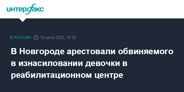 Москва. 15 июля. INTERFAX.RU - Новгородский районный суд арестовал обвиняемого в изнасиловании девочки в детском реабилитационном центре, сообщила в среду пресс-служба суда.