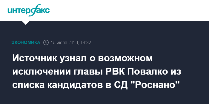 Источник узнал о возможном исключении главы РВК Повалко из списка кандидатов в СД "Роснано"