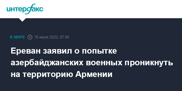 Ереван заявил о попытке азербайджанских военных проникнуть на территорию Армении