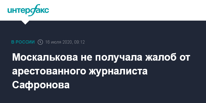Москалькова не получала жалоб от арестованного журналиста Сафронова