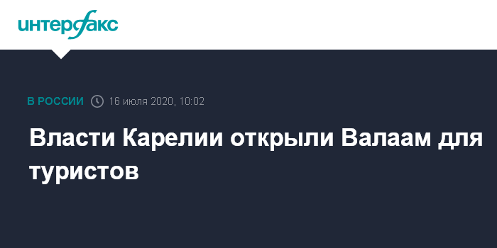 Москва. 16 июля. INTERFAX.RU - В Карелии с 16 июля снова можно посещать природный парк "Валаамский архипелаг" в составе организованных туристических и паломнических групп, написал в соцсетях глава республики Артур Парфенчиков.