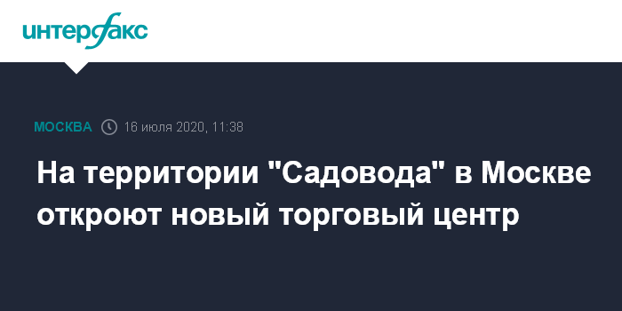 Москва. 16 июля. INTERFAX.RU - На территории торгового комплекса "Садовод" на юго-востоке Москвы в 2020 году будет открыт новый торговый центр, сообщили в четверг в пресс-службе комплекса.