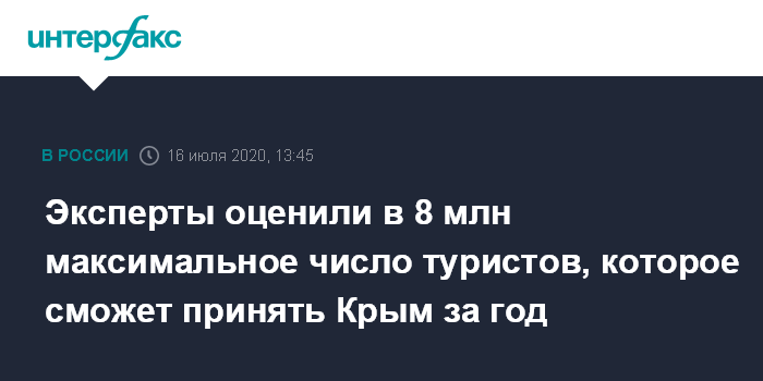 Москва. 16 июля. INTERFAX.RU - Крым в нынешних условиях способен принять порядка 8 млн туристов в год, если отдыхающих будет больше, сильно пострадает качество обслуживания, считают эксперты.