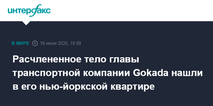 Расчлененное тело главы транспортной компании Gokada нашли в его нью-йоркской квартире