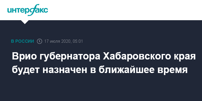 Врио губернатора Хабаровского края будет назначен в ближайшее время