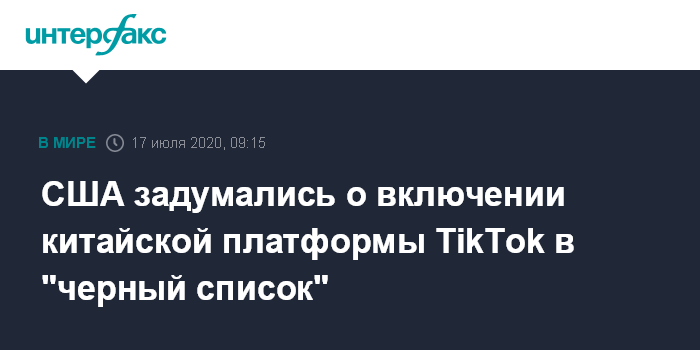 Москва. 17 июля. INTERFAX.RU - Белый дом продолжает изучать возможность включения китайской видеоплатформы TikTok в "черный список", что фактически запретит американцам использовать популярное видеоприложение, сообщила в пятницу газета Financial Times со ссылкой на осведомленные источники.