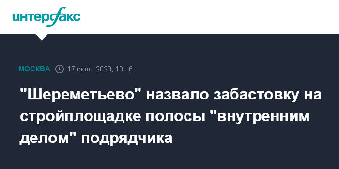 Москва. 17 июля. INTERFAX.RU - Забастовка рабочих на стройплощадке аэродрома "Шереметьево" является "исключительно внутренним делом" подрядчика – компании "Энерго-строй", заявляют в АО "Международный аэропорт "Шереметьево" (МАШ).