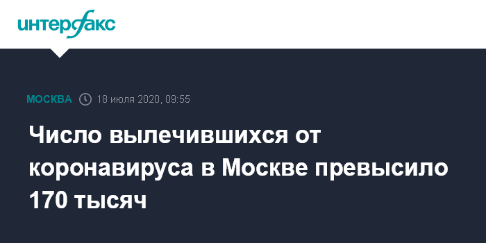 Число вылечившихся от коронавируса в Москве превысило 170 тысяч