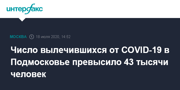 Число вылечившихся от COVID-19 в Подмосковье превысило 43 тысячи человек