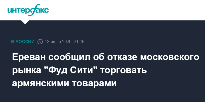 Ереван сообщил об отказе московского рынка "Фуд Сити" торговать армянскими товарами