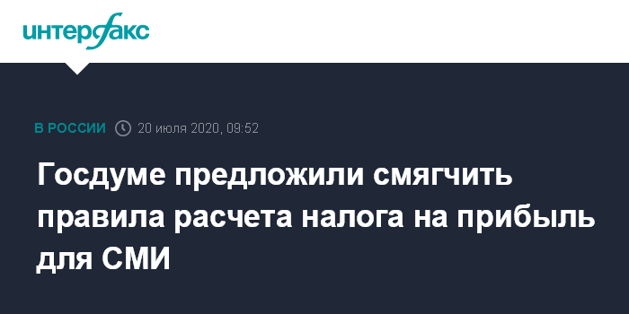 Госдуме предложили смягчить правила расчета налога на прибыль для СМИ