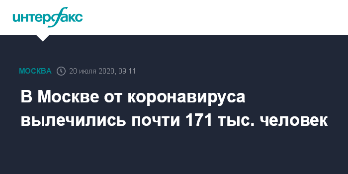 В Москве от коронавируса вылечились почти 171 тыс. человек