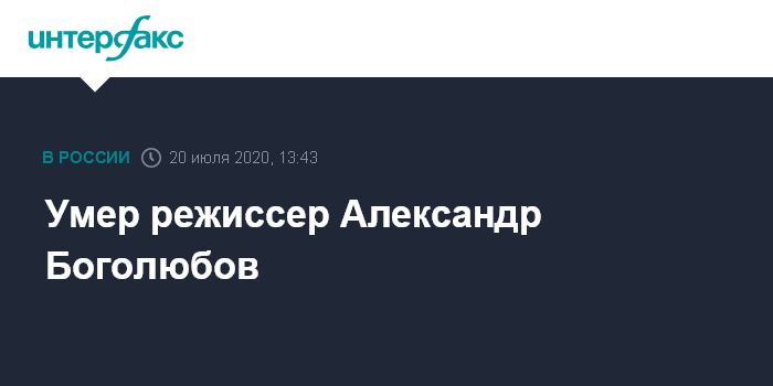 Москва. 20 июля. INTERFAX.RU - Режиссер анимационных фильмов "Волшебник Изумрудного города" и "Приключения Незнайки и его друзей" Александр Боголюбов умер в возрасте 86 лет, сообщили в Союзе кинематографистов РФ.