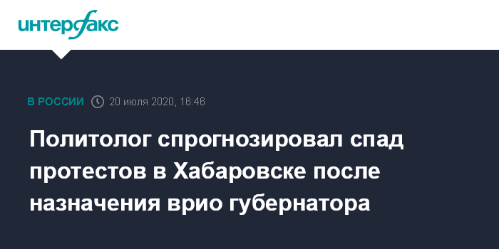 Политолог спрогнозировал спад протестов в Хабаровске после назначения врио губернатора