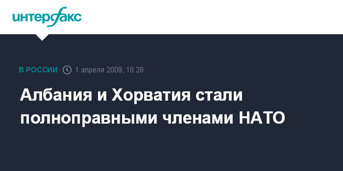 Брюссель. 1 апреля. INTERFAX.RU - Албания и Хорватия со среды официально становятся членами НАТО, объявил пресс-секретарь Североатлантического альянса Джеймс Аппатурай.