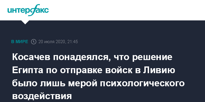 Косачев понадеялся, что решение Египта по отправке войск в Ливию было лишь мерой психологического воздействия