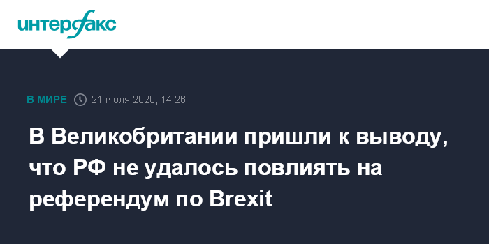В Великобритании пришли к выводу, что РФ не удалось повлиять на референдум по Brexit