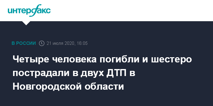 Четыре человека погибли и шестеро пострадали в двух ДТП в Новгородской области