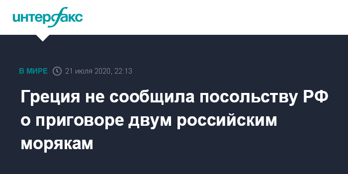 Москва. 21 июля. INTERFAX.RU - Российское посольство в Греции до сих пор не получило официального уведомления о приговоре в отношении российских моряков, осужденных за перевозку нелегалов.