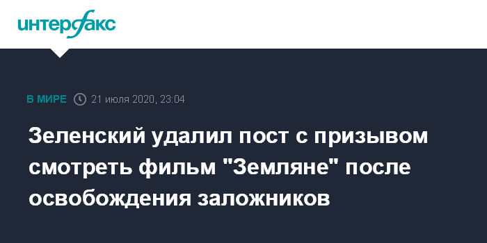 Зеленский удалил пост с призывом смотреть фильм "Земляне" после освобождения заложников
