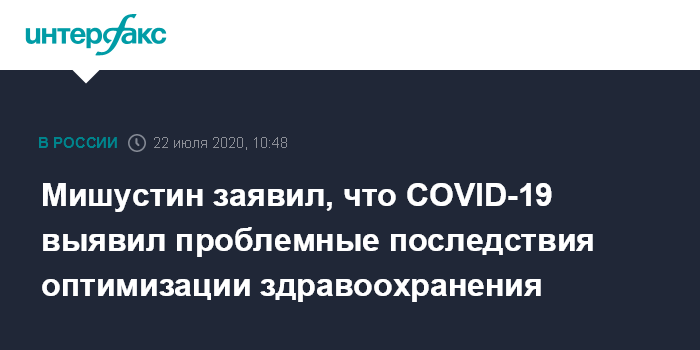 Москва. 22 июля. INTERFAX.RU - Россия справляется с коронавирусом успешнее, чем США и многие другие страны, но эпидемия в том числе показала проблемы, возникшие "при оптимизации здравоохранения", заявил в Госдуме премьер-министр Михаил Мишустин.