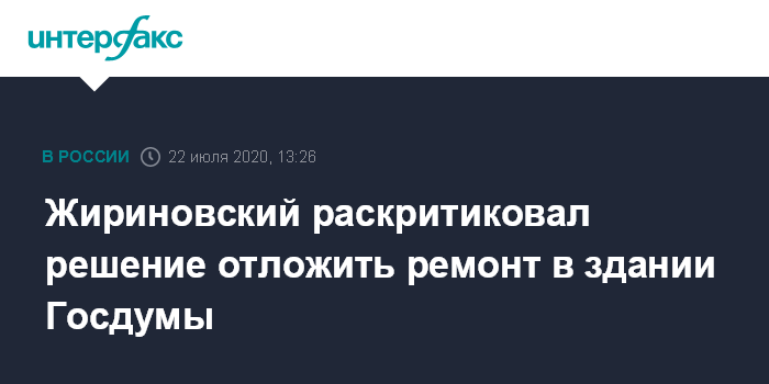 Москва. 22 июля. INTERFAX.RU - Лидер ЛДПР Владимир Жириновский раскритиковал решение отложить ремонтные работы в здании Госдумы.