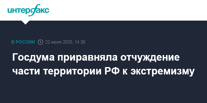Госдума приравняла отчуждение части территории РФ к экстремизму