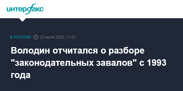 Москва. 22 июля. INTERFAX.RU - Госдумы в весеннюю сессию завершили разбор "законодательных завалов", скопившихся из законопроектов, внесенных с 1993 года, объявил спикер Вячеслав Володин.
