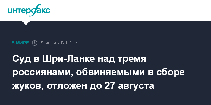 Суд в Шри-Ланке над тремя россиянами, обвиняемыми в сборе жуков, отложен до 27 августа