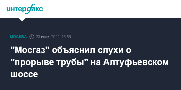 Москва. 23 июля. INTERFAX.RU - В Москве не было прорыва газовой трубы на Алтуфьевском шоссе, там у дома 46 идут плановые работы по замене запорного устройства газопровода, сообщили в пресс-службе АО "Мосгаз" в четверг.