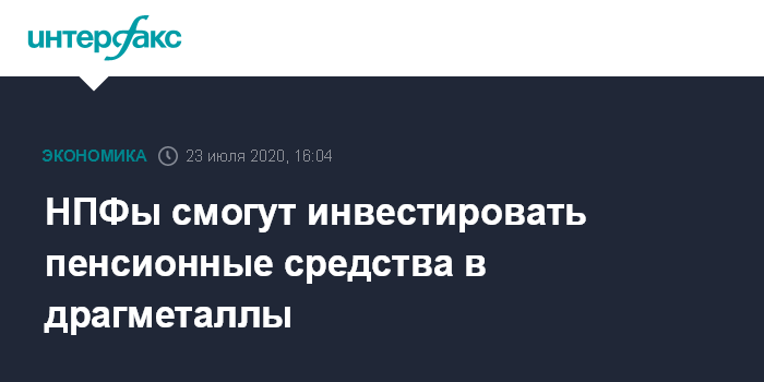 По его словам, драгоценные металлы также добавят в число инструментов, в которые могут инвестироваться средства НПФ.