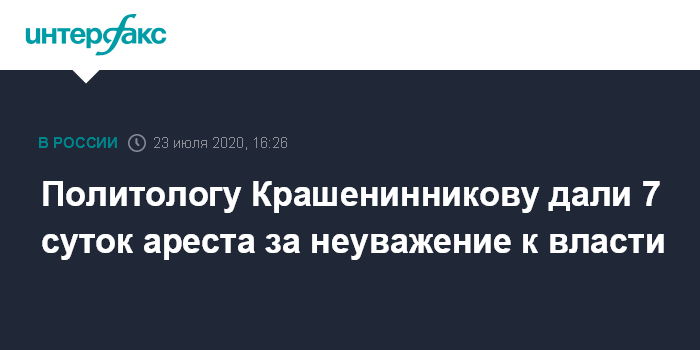 Ранее сообщалось, что Крашенинников был задержан в Екатеринбурге. В отношении него, по данным его адвоката, составили протокол за повторное неуважение к власти (часть 4 статьи 20.1 КоАП РФ). Согласно документу, 14 марта политолог оскорбил судей Конституционного суда РФ, комментируя просьбу главы государства дать разъяснения по количеству президентских сроков.