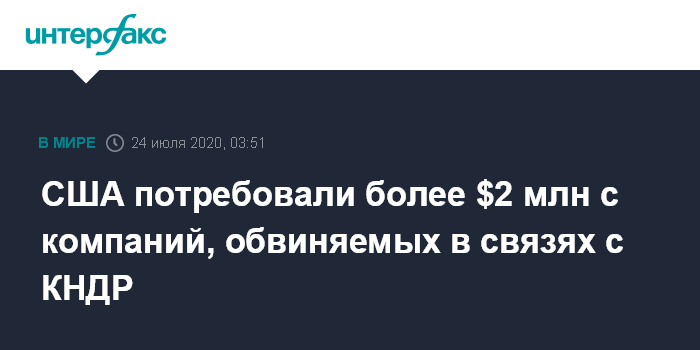 США потребовали более $2 млн с компаний, обвиняемых в связях с КНДР