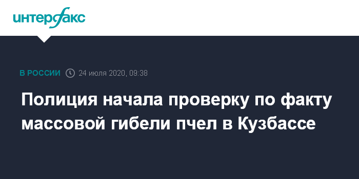 "С целью установления причины гибели медоносных пчел сотрудники кузбасской полиции организовали проверки. К ним будут привлечены специалисты профильных организаций и ведомств. Образцы погибших насекомых и мед направлены на исследование", - говорится в релизе.