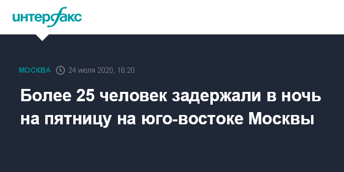 Москва. 24 июля. INTERFAX.RU - Более двадцати пять человек задержаны в ночь на пятницу в районе Марьино на юго-востоке столицы из-за серии разбоев и хулиганства, сообщили "Интерфаксу" в пресс-службе московского главка МВД.
