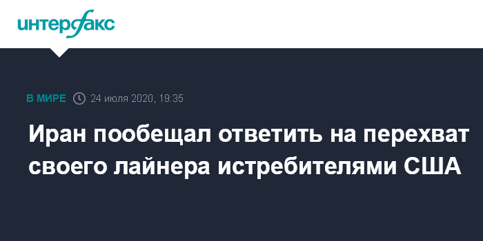 Москва. 24 июля. INTERFAX.RU - Тегеран обязательно предпримет ответные меры в связи с инцидентом в воздушном пространстве Сирии, когда истребитель США сблизился с иранским пассажирским самолетом, заявил в пятницу представитель МИД Ирана Аббас Мусави.