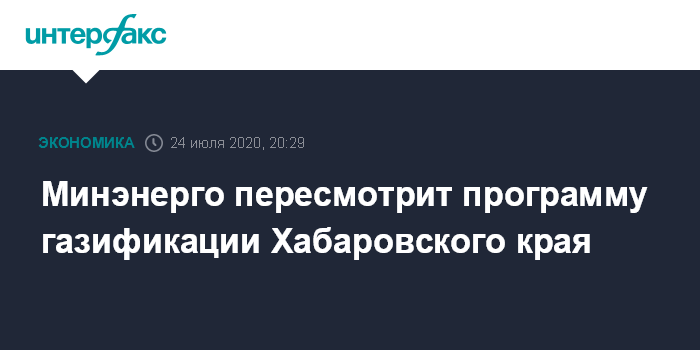 Москва. 24 июля. INTERFAX.RU - Программы развития газоснабжения и газификации Хабаровского края на период до 2025 года будет пересмотрена. Об этом сообщает пресс-служба Минэнерго РФ по итогам визита министра Александра Новака в Хабаровск.