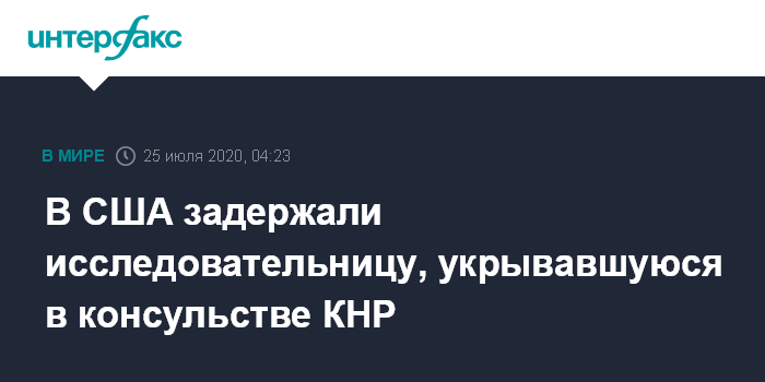 Москва. 25 июля. INTERFAX.RU - Исследовательница из КНР, которая укрывалась в китайском консульстве в Сан-Франциско от преследования американских властей, была задержана в пятницу, сообщает Associated Press.