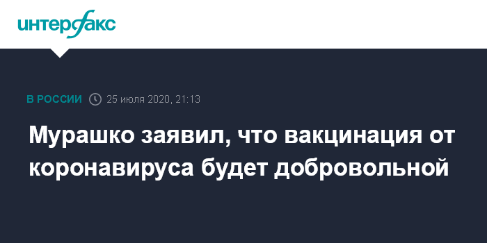 Москва. 25 июля. INTERFAX.RU - Министр здравоохранения РФ Михаил Мурашко заявил, что вакцинация от коронавируса будет добровольной.