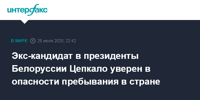 Экс-кандидат в президенты Белоруссии Цепкало уверен в опасности пребывания в стране