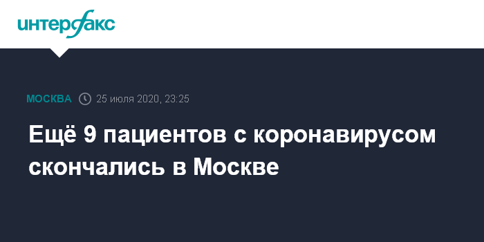 Ещё 9 пациентов с коронавирусом скончались в Москве