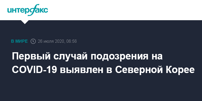 Первый случай подозрения на COVID-19 выявлен в Северной Корее